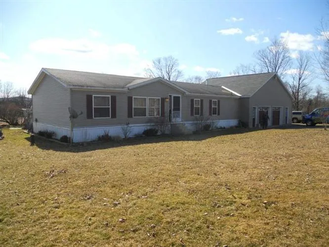 ON SALE NOW! Meticulously maintained doublewide home with attached 36x36 two story finished garage on 123 acres of beautiful land. Garage has installed plumbing for radiant floor heat, separate work room, sheet rock and is fully insulated. Can easily be converted to additional living space. This would make an excellent choice for a recreation and hunting camp! Above ground pool with wrap around deck. Home features large eat-in kitchen with sliders to deck and master bed with full bath. Land features 25 acres tillable soil with additional overgrown fields, 25 acres mature maple hardwoods, roads & trails. This is a wildlife sanctuary! Owner has planted alfalfa, Imperial Whitetail Clover, and turnips for deer and turkey. Trout fill the fishable spring creek. Just a gorgeous spread and reasonably priced. Call now for your appointment!