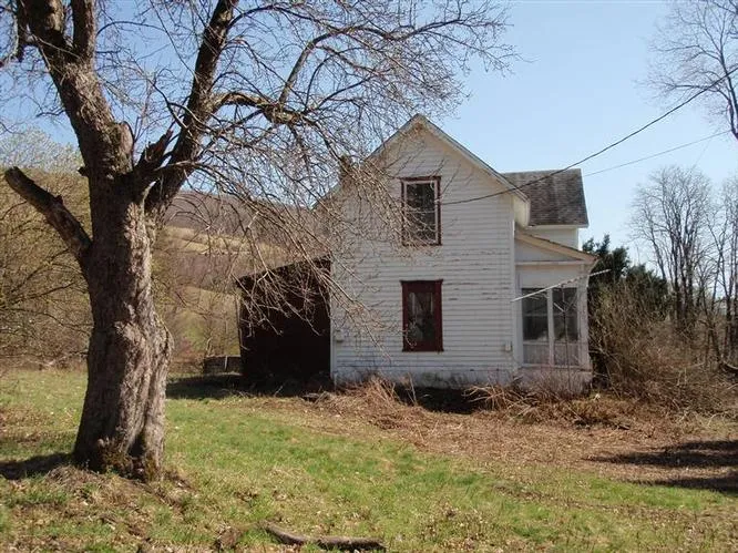 Perfect location for your hunting and recreational get-a-way, restoration or building project. This 27 acres is nestled in a peaceful valley setting on a quiet dead end country road. Property boasts gorgeous valley views and acres of apple, plum, and cherry trees in the back yard. The house needs restoration, but the beautiful setting makes it worth the attention. Excellent hunting and recreation here! Make your appointment today.