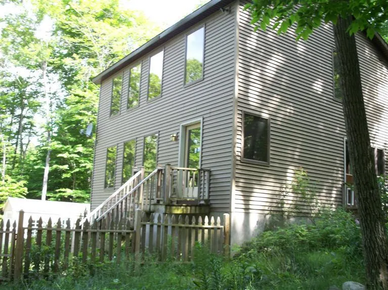 Newer contemporary home nestled in the woods for great privacy.Two bedrooms,1 bath with new kitchen and bath.Large fenced in yard for pets with 1 car detached garage.Wonderful open style home.Many large windows make the home light and bright.Storage shed for mower and snow blower.