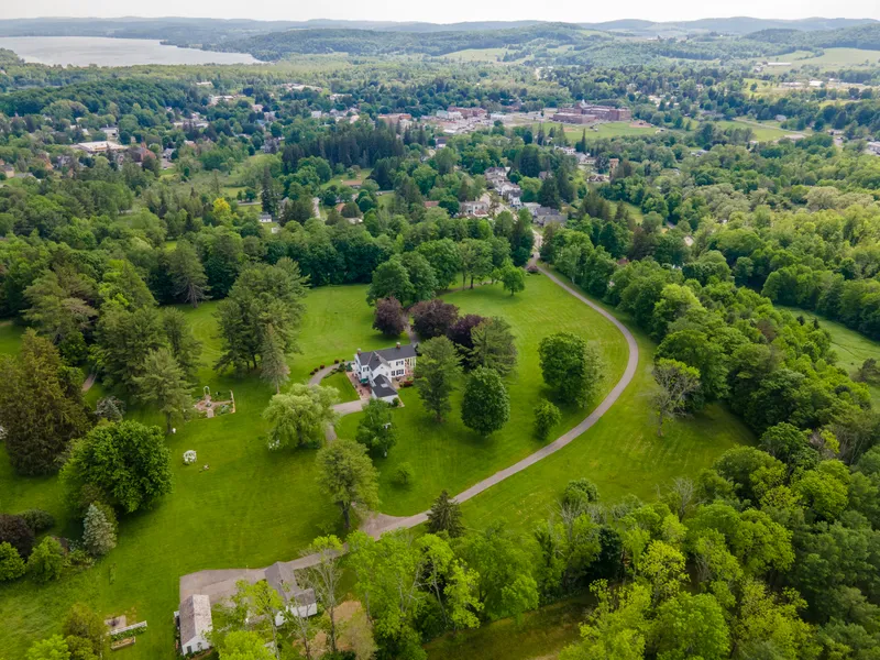 Pass through the gates up the circular driveway to be greeted by "Sunset Hill", a Georgian masterpiece set on 12 manicured acres. Nowhere else can you find a furnished turnkey architectural beauty to enjoy peace and tranquility. With a 1 bed/ 1bath caretaker cottage, horse barn, and office with separate entrance to welcome clients, the opportunities are endless. This home has been enjoyed as a personal estate, successful Bed & Breakfast to renowned guests, and desirable event/wedding venue. Stately rooms are enhanced w/ features like hardwood floors, fireplaces, 10 ceilings, built in bookshelves, exposed brick, & stunning light fixtures. 5G internet, low taxes, public utilities, newer roof & modern plumbing/electrical! Nestled a stones throw from Cooperstown, Canadarago Lake & picturesque Glimmerglass State Park, Sunset Hill is sure to appeal to any discerning buyer.