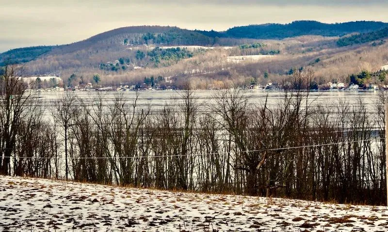 Everyone will love the site of this home: 3.02 acres with nearly 5 mile long Canadarago Lake spread out before you. Homes in the area are mostly larger, newer, and much more expensive, but their views may not be as good. Not only do we have the lake on display in all seasons, but surrounding mountains as well. Watch the sun rise over the mountains, slowly illuminate the lake, then make its way to your home. The lot is mostly fenced into paddocks for a variety of livestock. High and dry land, varied topography, with a small stream running through for livestock water. And a small apple orchard. Open land, with just the right amount of shade. Circular driveway too. 413 of road frontage on a very quiet paved road. Richfield Springs is 10 minutes to the north and Cooperstown is 15 minutes to the south.