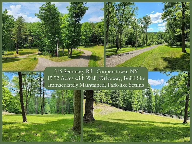 Just minutes from the heart of Cooperstown and under 2 miles from Cooperstown Dreams Park, this spectacular 15.97-acre parcel is the perfect canvas for your dream home or investment property. Tucked behind a private gated entrance, the land is beautifully manicured and alive with wildlife, offering both serenity and inspiration. Key amenities are already in place electric has been run to a potential home site and a well has been professionally drilled saving you time and money. High-speed fiber optic internet ensures you stay connected, whether you re working from home or managing a vacation rental. With its unbeatable location and endless possibilities, this property is a rare find that combines natural beauty, convenience and opportunity.
