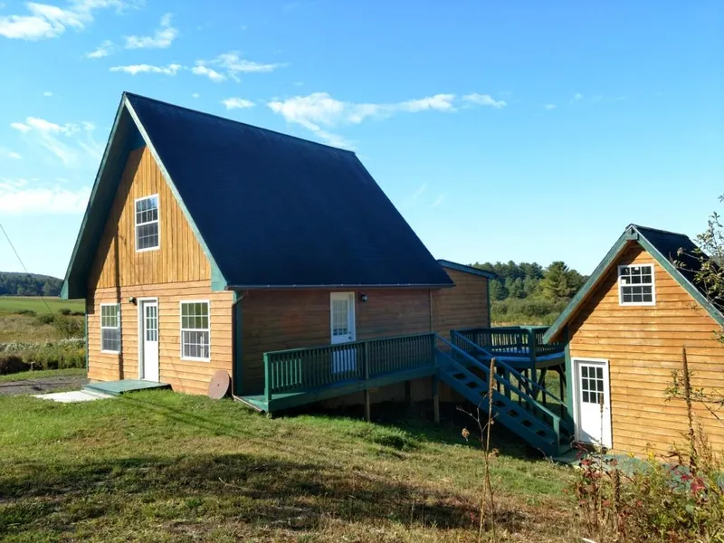 Exceptional and unique hunting and recreation property here! The family will love this newly remodeled three bedroom Cape with separate guest cabin. The main cabin has all the comforts of home and features laundry, full bathroom, kitchen, dining area and family room with sliding doors leading out to a wrap around deck. Beautiful views to the West overlooking fields and ponds. Quality construction with no concerns here! All NEW utilities including furnace, hot water tank, well pump and pressure tank. Both structures are immaculate. The land is comprised of wetlands and conservation lands. Featuring several ponds for ducks, waterfowl and other wildlife. The large pond contains Bass and the Wharton Creek is a designated Trout Stream. The deer hunting is second to none with a massive amount of sign due to the excellent habitat. Thick bedding areas, apple trees and other food sources, lush w...