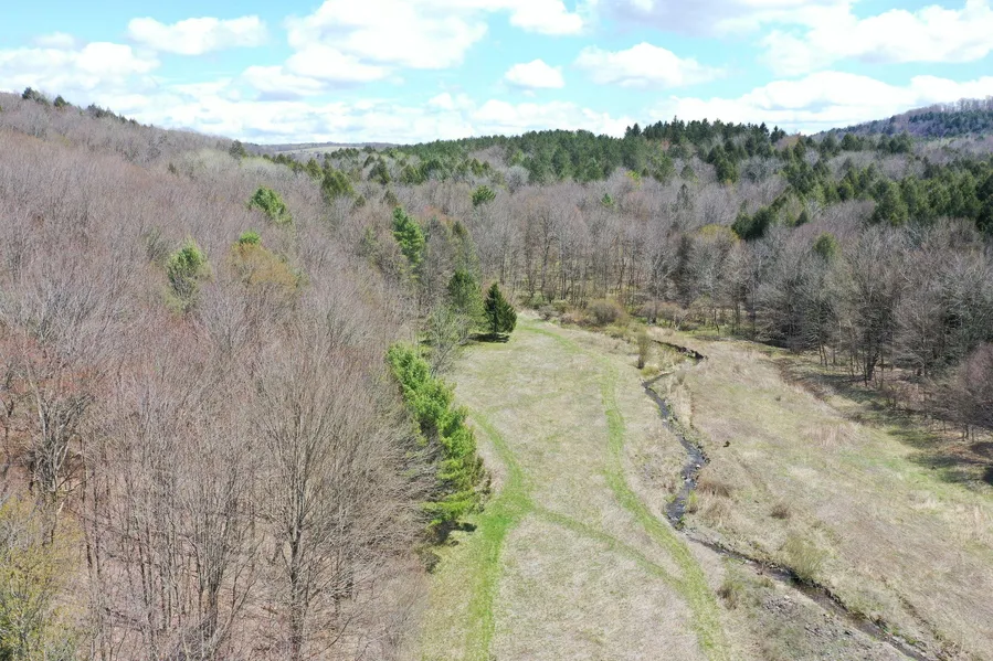 This property is located in the heart of the Leatherstocking area, full of history and outstanding beauty. It has interesting diversity and deer habitat with a mix of hardwoods, white pine and a nice mature hemlock ridge which overlooks one of two streams that passes through the property. It is obvious the deer cruise this ridge by the distinct deer trail they are using. This spot presents a great location for a tree stands to view most every deer in the area. There is what appears to have been a small ag field or pasture years ago, now one leg of the stream cuts through it making it a natural secluded feeding area and a perfect place for a food plot. There is a nice rustic style camp structure, built in 2004, with a classic wood stove, a screened-in area and a covered space to park your ATVs if desired. There is a well with bucket, rope, and crank, all you need to clean up. Deer, grouse, and turkey were present on the property as it is today. Following proven QDMA practices, the new owner could really have an amazing honey hole to draw in the deer and wildlife of the larger surrounding properties, for the hunter/outdoor enthusiast.