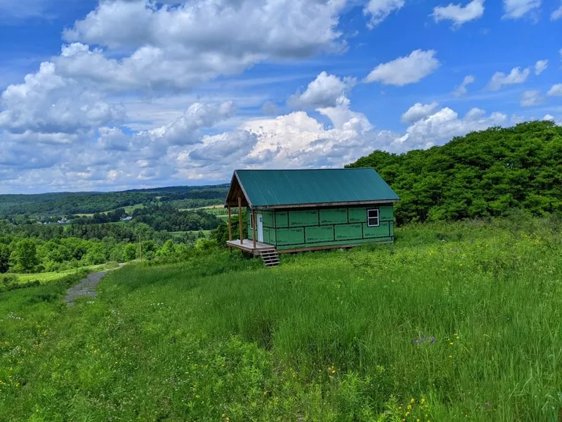 Worth every penny for this versatile property featuring panoramic VIEWS of the Wharton Creek Valley. This fantastic recreational and quality hunting property features a newly constructed unfinished two story cabin framed for two ground floor bedrooms, 2nd story loft and full bathroom. Improved stone driveway to the cabin offering long distance VIEWS and complete privacy. The sale includes materials to finish the project; all new appliances, washer, dryer, range, refrigerator, pellet stove, ceramic tiles for the floor, ceiling fans and all the light fixtures including a beautiful antler chandelier. New electric utility service. The well has been drilled and capped, but the septic system needs to be put in at an estimated cost of $6,500.The land is stunning featuring high quality tillable open fields and mixed hardwoods. Approximately 20 acres open field and the balance in mature woodlands. Marketable maple, ash and cherry standing. The property was used for quality DEER HUNTING and offers some of the best opportunities for deer and turkey in the area with diverse habitat, food, cover and water. The owner dug a nice spring fed POND suitable for swimming and holding fish. A great choice for a RETIREMENT or vacation home! Just 5 minutes to the Village of Edmeston for primary health care, food, hardware, banking, gas and groceries. Approximately 25 minutes to the City of Oneonta or Cooperstown!