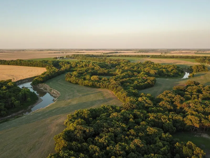 The current owners have had great luck turkey and deer hunting over the years around the hidey hole food plots along the timber edges. They have some box blinds and stands on the property that are not included in the sale, but could be purchased separately. There are impressive roost trees in the mixed hardwoods and good bedding cover for the whitetails that call this place home. Great fishing opportunities exist in the river and while photographing the property I flushed a covey of quail in the northeast corner. The crop ground is open for the 2021 season. Whether you're looking for a recreational property with income potential or an addition to a farming operation with excellent income potential from a hunting lease, this property is a great option. The property was split off of the adjoining 17 acres and home, but estimated taxes are approximately $1,400. It lies in sections 29 and 32, township 11, range 3. This tract is just 10 minutes from Bennington, 23 minutes from Salina, 55 minutes from Junction City, and 1 hour 15 minutes from Manhattan. For maps, disclosures, or to schedule a showing call Joey Purpura at (785) 831-3045.