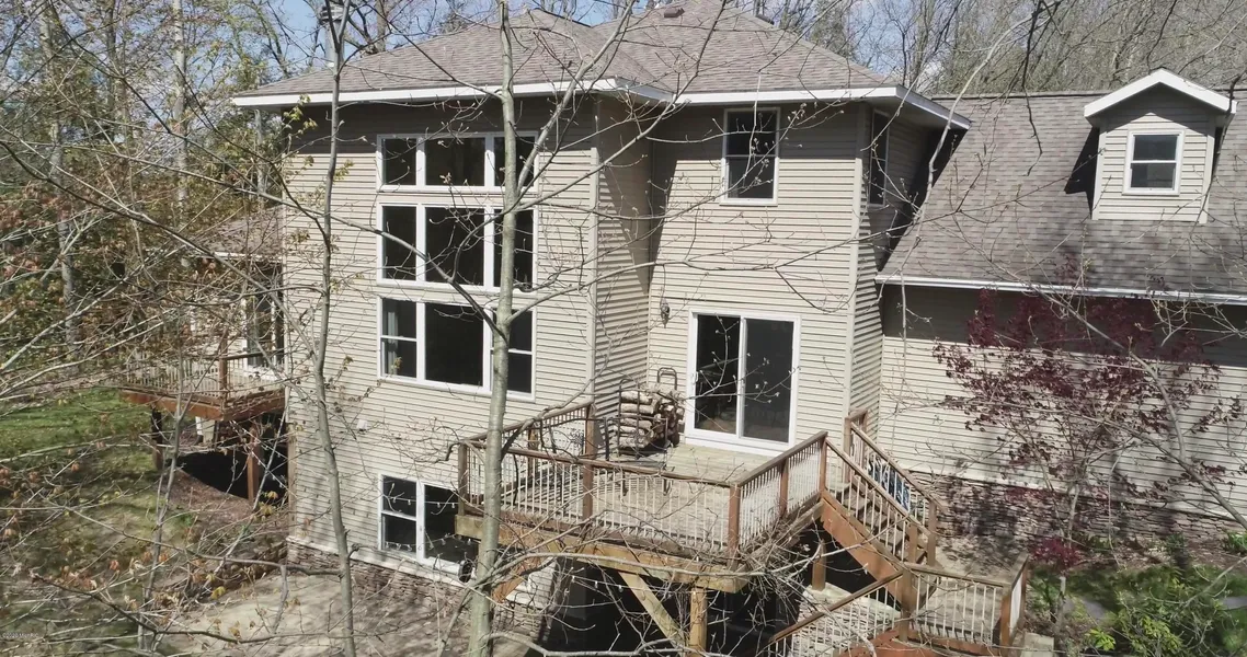 The communities winding drive ends where your 7.6 acre hill top estate begins. This home is tucked in the very back of the development and proudly overlooks 1,000 foot of winding Sand Creek private frontage. The entire home is designed to soak in the views and features a two story wall of windows next to a gas fireplace that is certain to slow life down and put a smile on everyone. Granite countertops and stone wall treatments enrich the home stylish decor. Main floor master suite. The walkout basement provides plenty of room to spread out and enjoys the same great views. It also has a full bath and 5th bedroom.