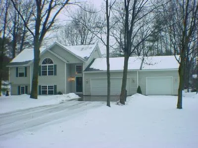 #8844 This home is nestled on an exceptional private wooded lot that is almost an acre. This home is located in Lakewood Schools close to Tunnel Park and Lake Michigan. This open concept home has a large living room with vaulted ceilings. The kitchen has a center island, pantry and oak cabinets. Oak woodwork throughout. The dining area leads to the large deck overlooking a private backyard. The large master bedroom has access to the bath area. The lower level is finished with two bedrooms, family room, Laundry/full bath and nice storage area with extra washtub. The newer 3-stall garage has 220 electrical service, hot and cold water. An out building with separate drive is possible on extra lot behind house that was purchased and part of this sale.