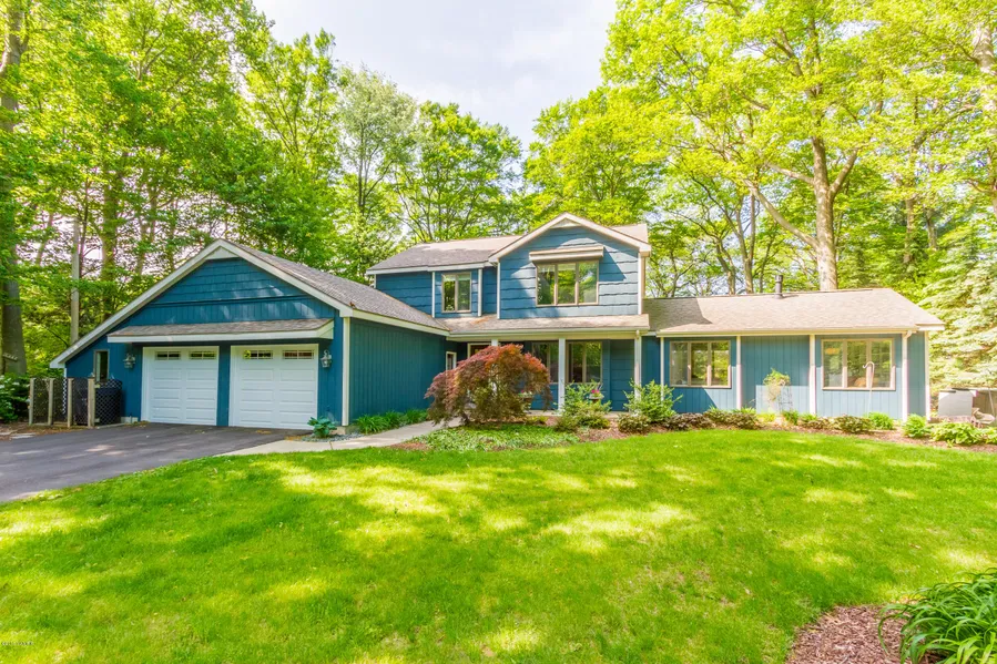 Beautiful House located on the Lake Macatawa in the highly sought after Waukazoo Woods. Almost an acre of professional landscaped property and Permanent 60 ft dock. This uniquely designed retreat with beautiful wooded surroundings is the perfect place to unwind and relax or entertain inside or out! The main level offers family room with beautiful fireplace, flames visible from 3 sides, separating an office area from the family room. Large dining area with a view of the lake, a seating nook to relax and enjoy the lake view & convenient laundry room. The finished lower level has a beautiful tiled bath with heated floor, sauna, exercise room with double french doors, 5th bedroom, game room, wine chill and coffee bar, craft room, storage and workshop area.Outside there is new lakeside decking