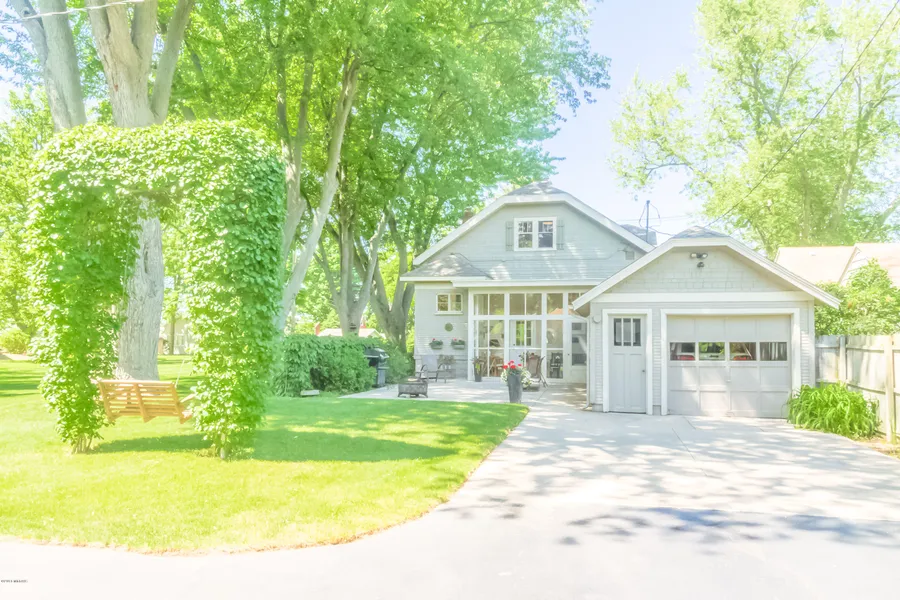 Don't judge a book by its cover. This Early 1900's home on a double lot is completely remodeled in a contemporary styling and features amazing views of Lake Macatawa without paying the price! The entire main floor of this home features solid oak flooring throughout. The updated white-cabinet kitchen has quartz countertops, stainless steel appliances, large garden windows, and a casual flow into the dining/ living room, which has a contemporary stoned fireplace and great views of Lake Macatawa. The main floor master bedroom has a spacious walk-in closet and off-suite bath and additional bedroom. Upstairs you will find two large bedrooms, one with a walk-in closet along with a full bathroom. The large yard is maintained and landscaped beautifully with many perennials and a storage shed!