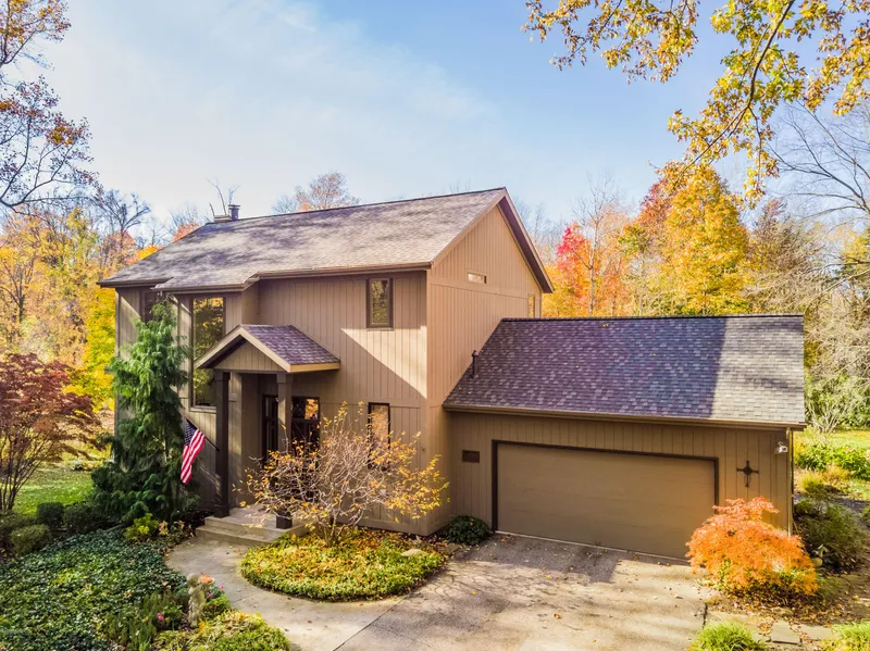 This stately 2 story house on private 1.56 acres with spectacular gardens & fish-laden pond is peacefully surrounded by woods. Home has 3 bedrooms, 4 baths, 2,759 sq ft all attractively decorated with an open concept living room, dining room & kitchen. The living room boast a granite fireplace & cherry stained engineered hardwood, the kitchen has granite counter tops & stainless steel appliances & main floor laundry is located right off kitchen. The sliders off the living room welcome you out to a large deck with retractable awning. The upstairs has a master suite with sitting area, bathroom & walk in closets. Enjoy the 3 season room that has electric baseboard heat & custom made storm windows for year round enjoyment. Walkout basement has family room , bedroom & bath with floor to ceiling