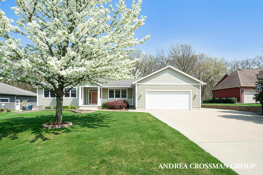 Just 3 doors away from the award-winning Peach Plains Elementary School, this wonderful 5 bedroom/ 3.5 bath ranch style family home in the highly desirable Bazany Neighborhood provides plenty of room to live, play, and grow. Constructed by Buitenhuis Builders, this well-crafted home provides a multitude of spaces inside and out to enjoy. Main floor Master w/ensuite bath and walk in closet, open kitchen with granite countertops and stainless-steel appliances, and a large lower-level family room w/surround sound to enjoy your favorite entertainment. A minute from the school, playground and athletic fields. The sandy beach and soccer fields at Pottawatomie Park are less than a mile away. If there is a home that says family location...this is it! Come see it for yourself!