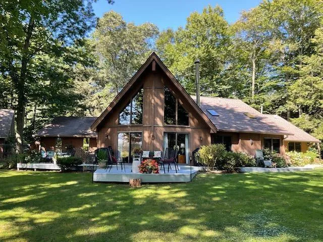 Welcome to a peaceful oasis with 10 acres of breathtaking natural beauty, including lush trees, vibrant flowers, and variety of wildlife. The updated 4-bedroom, 2.5 bath home has been meticulously maintained and features numerous modern upgrades. Additionally, a newer outbuilding boasts a loft, studio, and spacious 2-stall storage area. Inside you will find an open concept layout encompassing the kitchen, living, and dining areas. The recently remodeled kitchen is equipped with a large center island, high-end appliances, quartz countertops, and a cozy wood stove. Large windows throughout the home allow for ample natural light and showcase the stunning surroundings. The primary bedroom offers a walk-in closet, en-suite bathroom, and generous living space. The remaining three bedrooms are equally well-appointed. Outside, you can relax on the patio or decks while observing the local wildlife. For those seeking outdoor adventure, the property is conveniently located near 3 township beaches along Lake Michigan. You'll have easy access to these picturesque coastal destinations.