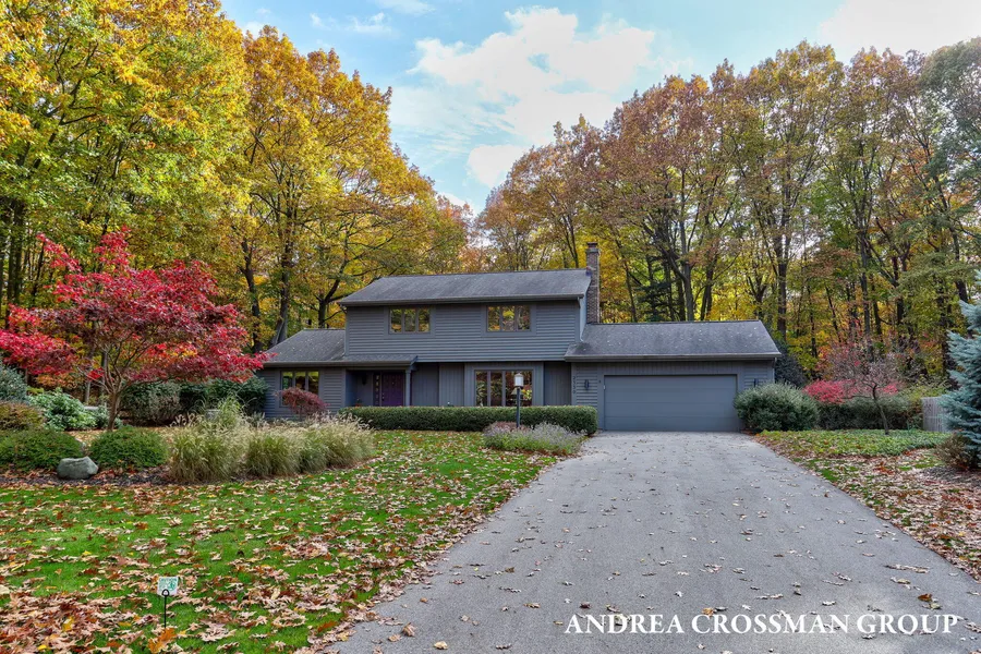 Located in the quiet and desirable lakeshore neighborhood of Sunset Bluff, this home offers fantastic Lake Michigan access with a sandy, wide beach just moments away. Situated on a cul-de-sac, it features beautiful landscaping and a private wooded backyard. The main level boasts an open-concept kitchen and family room with a cozy fireplace, plus additional dining and living areas. Upstairs, the primary suite includes an ensuite bath and three additional bedrooms and a full bath. The lower level offers a finished recreation room with expansion potential. A heated two-stall garage ensures comfort in winter months. With some modern updates, including a new refrigerator and dishwasher, this well-maintained home is an ideal beach retreat or year-round residence. Just a short distance from beach stairs and deeded access, this home is perfectly positioned to enjoy the best of lakeshore living.