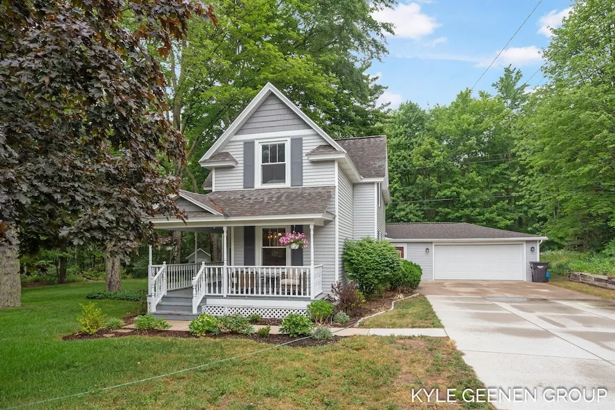 Welcome to peaceful living at 15405 Barry Street. This spacious farmhouse combines timeless charm with thoughtful modern updates, offering comfort, character, and room to roam. Nestled on just over 2 private acres, this 4-bedroom, 2-bath home is ideal for those who crave space inside and out. Step inside to a beautifully updated main floor featuring multiple sitting and living areas, perfect for both quiet evenings and lively gatherings. The main level also boasts a thoughtfully designed entry space with custom lockers, perfect for keeping everything organized. The completely remodeled kitchen shines with brand-new appliances and stylish finishes, creating a warm, functional heart of the home. Upstairs you'll find four spacious bedrooms and a full bath, offering room for family, guests, or a home office. The homes farmhouse charm remains intact, enhanced by modern updates including new siding and windows for added style, efficiency, and curb appeal. Outside, a wrap-around country porch invites you to relax, and a private basketball court adds a fun, active touch for all ages. The property also includes a 12x14 outbuilding and an attached 2-car garage. This is your opportunity to enjoy the character of a classic farmhouse with all the updates you've been looking forset on a peaceful, expansive lot in beautiful West Olive. Schedule your private tour todaythis one is truly move-in ready!