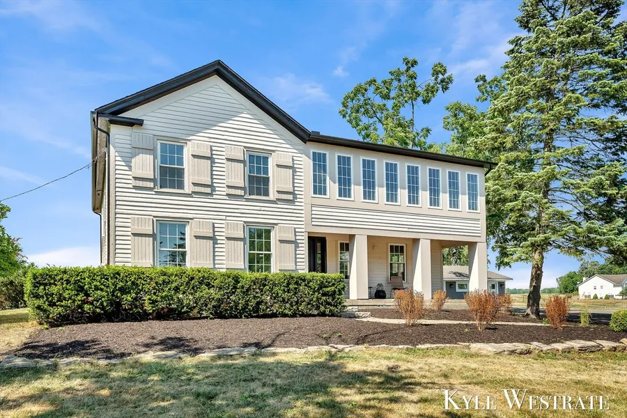Welcome to 7761 Leonard! This beautifully renovated farmhouse boasts modern upgrades throughout and sits on nearly 3.5 acres opposite the Grand River. The home features three spacious bedrooms and an open-concept layout, worthy of an HGTV showcase. Highlights include shiplap accents, wood ceilings, a master suite, and luxurious marble bathrooms. The main floor offers a spacious floor plan with a cozy wood-burning fireplace and a great room flooded with natural light, enhanced by wood ceilings and double French doors leading to your deck, overlooking the magnificent property. The fully remodeled kitchen shines with oversized granite countertops, beveled subway tile backsplash, and stainless steel appliances. This property is an equestrian's and hobby farmers dream with room for a horse pasture/oversized garden, updated electrical and water hookups in the 36' x 48' pole barn, and borders E...