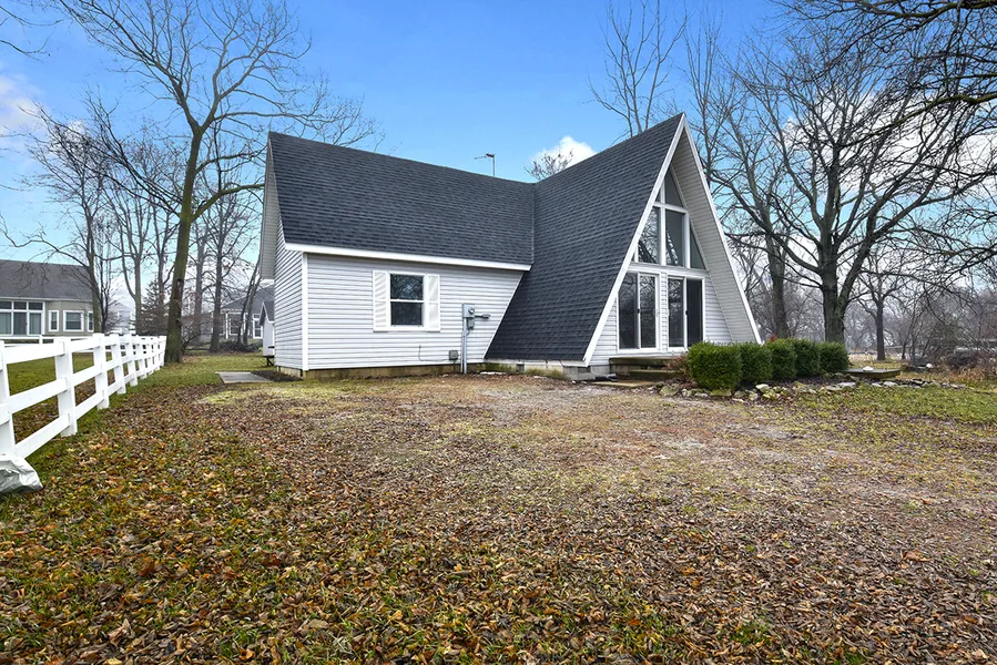 Johnson’s Island totally remodeled 1 ½ Story A-FRAME w/water view of Sandusky Bay from your living rm/kitchen/1st floor bedroom/loft and front porch! Open concept with 2 story living room and open eat-in-kitchen, spacious and perfect for entertaining! 2 Large bedrooms Loft and 1 ½ baths! 1st floor primary bedroom, 1st floor main bath, and 1st floor laundry area! Upgrades include enlarged kitchen w/soft close cabinets, pantry, undermount kitchen sink, quartz stone, tiled backsplash, hardware, microwave and dishwasher, remodeled full and half bath with new bathtub, toilets, tile, luxury plank vinyl flooring throughout, lighting, ceiling fans, new window in down bedroom, shiplap, freshly painted throughout, hot water tank, storm door, carpet on stairs to loft with new railing, new roof, stack, front patio steps re-leveled, plus much more! Nice size front and back yard with stone gravel dr...