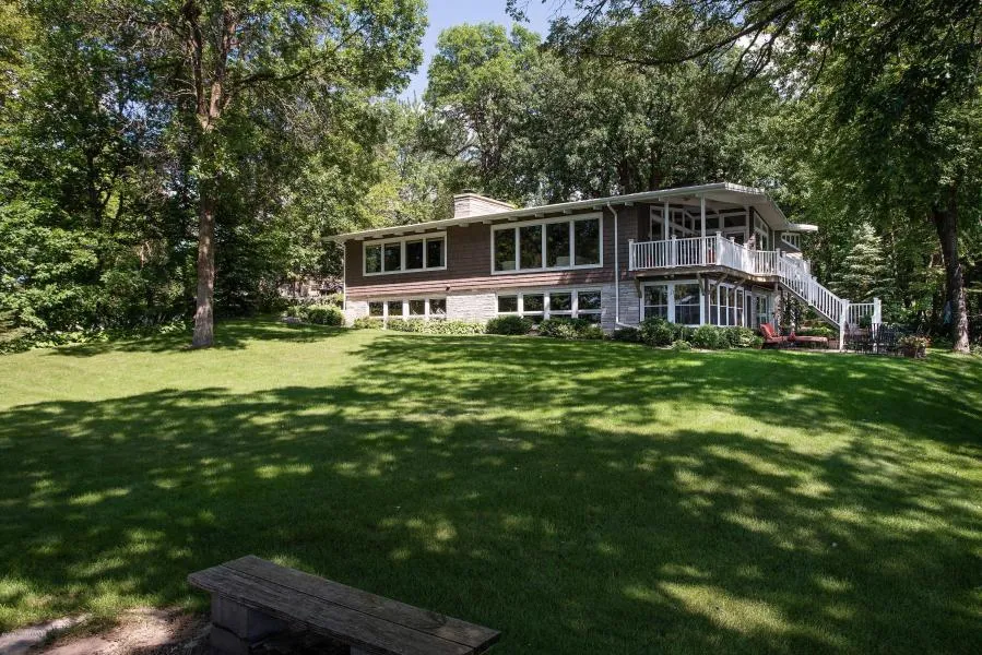 Hoot Lake! You will fall in love with the expansive water views at this breath-taking property. Situated on an extremely private and large lot (with over 320 feet of lake frontage!) this home features multiple entertaining areas inside and out. The interior of this home has vaulted, beamed ceilings, multiple fireplaces, a main level master suite, granite chef's kitchen, and luxurious deck system. The lower level features a sunroom, an additional garage/shop and sure to be everyone's favorite: a private theatre room! This enchanting home is truly one of a kind!