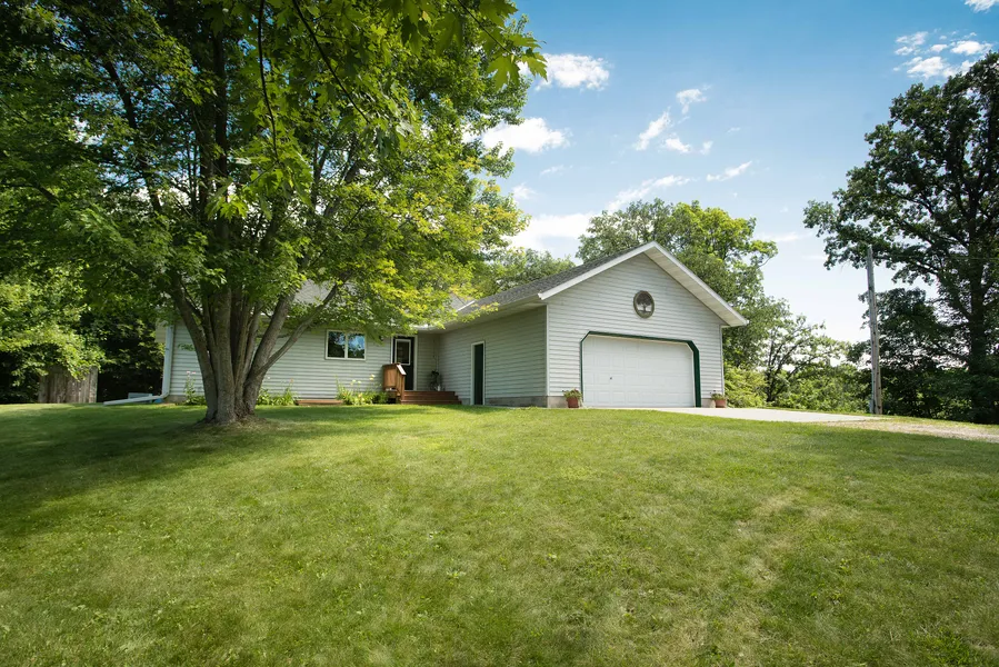 Enjoy 20 acres of beauty, privacy and serenity and abundant wildlife in the hills of Erhard, currently set up for horses. Pole shed with tack room - under floor heat, automatic heated waterer for your horses, raise chickens in the coop with fenced yard. This 1 story rambler offers an open floor plan with 3 bedrooms and 2 baths and a finished lower level. Close to Maplewood State Park which includes trails for Horses and winter snowmobiling.