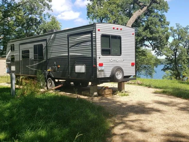 Clitherall Lake: One of Otter Tail County's premier lakes. 2 bed, 1 bath 2017 Keystone 38 bunk house that sleeps 9. Newer lake plat includes 1 acre plus backlot for bow hunting, etc. Lot has some elevation with a great building site. Sandy beach and great fishing. Clitherall Lake is 2,493 acres with 15' water clarity and depths to 69'. Public access with in 1/2 mile of this small private development. 'Boating Magazine included Otter Tail County in its list of 10 best places to live and boat in the continental United States.'
