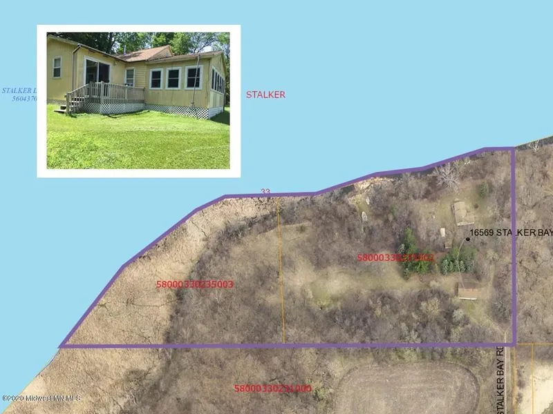 Dalton, MN on Stalker Lake 750 feet of shoreline - 10 acres trees, pole barn, house: 2 bedroom (sleeps 6), 1 bath room, kitchen, living room, and lakeside porch. Includes: 92 Silvan boat - 16 foot, 40 horsepower Johnson Motor, dock, lift, boat trailer and some tools.'