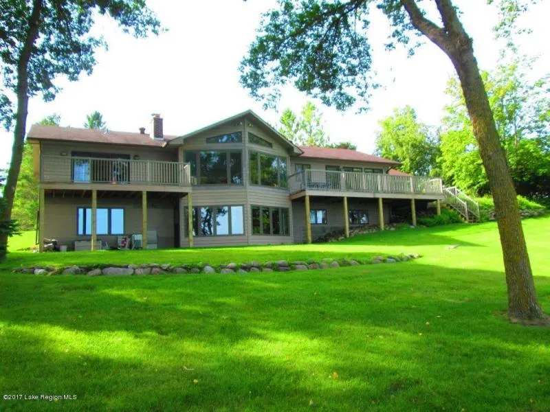 JEWETT LAKE! Rare opportunity to own 150 feet of pristine beach on a level lot. Fantastic combination of privacy, land and breath-taking water views. 4 bedrooms, 3 baths. This thoughtfully designed home has an amazing floor plan with numerous windows to the water, a spacious kitchen, main floor master bedroom, main floor laundry, numerous built-ins, 2 fireplaces, and tennis court. Enjoy the paved road to your driveway, just 10 minutes from Fergus Falls.