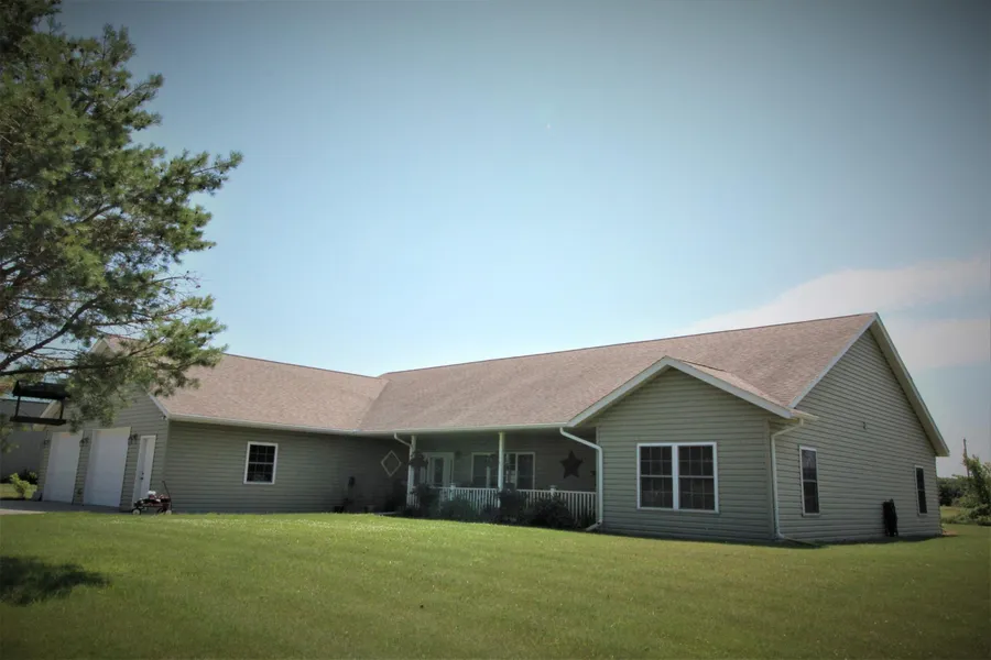 This 3 bedroom, 2 bath one level home is a must see, rural setting on the edge of town 1.9 acres from the backyard a view of Lake Adley awaits. City owns land to the west and a walking trail to the south. A 40x64 shed is perfect to store your motorhome with 13 door and 14 walls. Covered front porch to the lovely 3 bedroom, 2 bath home. Open floor plan, vaulted ceilings and 9 ceilings throughout. All the bedrooms have walk-in closets, the informal dining leads to the sitting room with stone fireplace, from there to the awesome patio for those barbecues. In floor radiant heat throughout home and garage (zone for each). In-ground sprinkler! Gazebo stays.'