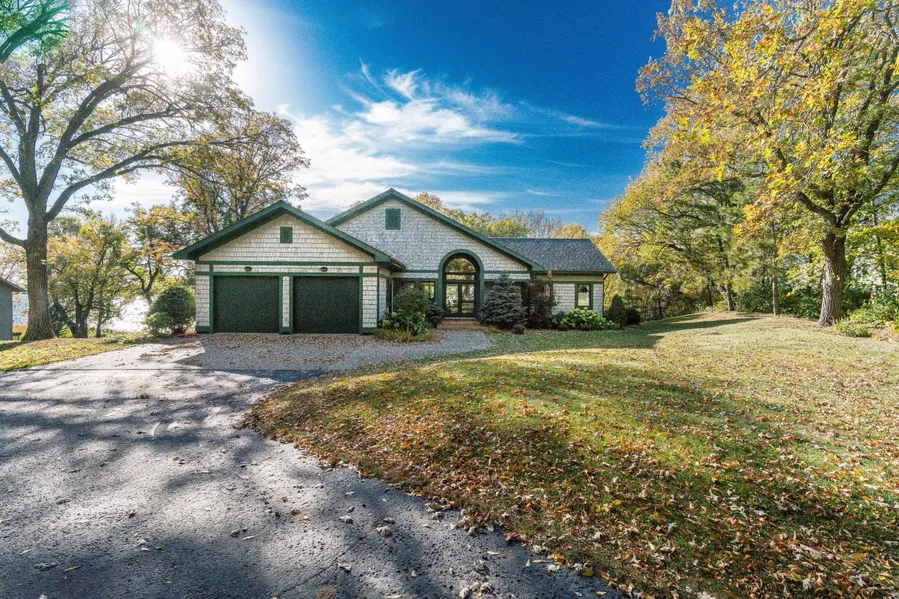 Silver Lake! Situated on 1.3 acres with 154 feet of frontage complete with a large lovely sandy shore, this gorgeous property is a rare find. This home was custom built in 2001 with absolutely no expense spared. The thoughtful design of this home focuses on the expansive and private lake views. Take note of the beautifully arched glass entry way, the grand vaulted ceilings, lovely hickory floors, large open concept kitchen, main floor primary suite, main floor mudroom/laundry, and oversized 3 season porch that flows onto the large deck system. The walk-out lower level features another 3 bedrooms, huge wood shop, large entertainment area with wet bar and comfortable in-floor heat. Brand new geothermal heating with gas back up installed in April 2023. You will also love the additional oversized detached garage—perfect for storing your boat and lake accessories. Ideal location within easy b...