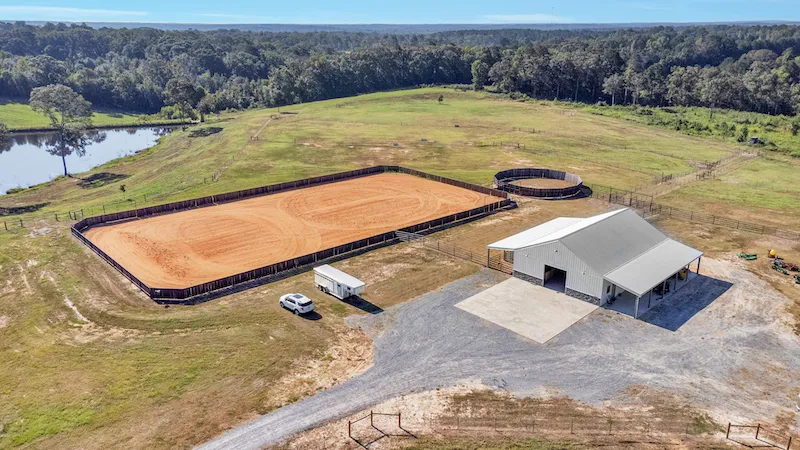 Welcome to your slice of paradise in the charming town of West Monroe, Louisiana. Nestled on approximately 75 acres of picturesque rolling terrain, this property boasts the beauty of scattered mature pine and oak trees, creating a serene and idyllic landscape. At the heart of the property lies a stunning 4-acre spring-fed pond, protected by a concrete spillway, offering not just a scenic vista but also a source of tranquility and recreation. The land is thoughtfully fenced and cross-fenced into eight separate pastures, each designed for optimal functionality and ease of management. Enhancing the practicality of the property, every pasture is equipped with an automatic waterer, ensuring the well-being of livestock and facilitating efficient care. Whether you envision a working farm, equestrian estate, or simply a private retreat surrounded by nature's splendor, this meticulously planned property offers endless possibilities for both enjoyment and productivity. For the equestrian enthusiast, a sprawling 60x70 horse barn awaits, complete with four 12x12 Priefert stalls, a pine wood-lined tack room, a feed room, and a barn apartment boasting approximately 250 sq ft of living space. With a 14 ft concrete alley facilitating effortless workflow, two roll-up doors for convenience, a 12 by 20 workshop with a roll-up door, and an 18 ft awning, this barn is a horseman's ultimate sanctuary. Indulge in breathtaking sunrises above the pine-draped horizon as you ride in the expansive 120x230 arena, seamlessly connected to a 60ft round pen, providing ample space for training and enjoyment. Perched atop the highest point of the property, an ideal homesite awaits, offering unparalleled panoramic views of the barn, arena, pond, and pasturesa vista that truly captures the essence of Southern splendor. Embrace the opportunity to turn your dream home into reality, surrounded by unmatched natural beauty and serenity. This is your invitation to experience the best of West Monroe living, where every moment is infused with the magic of the Louisiana landscape and the charm of the South.