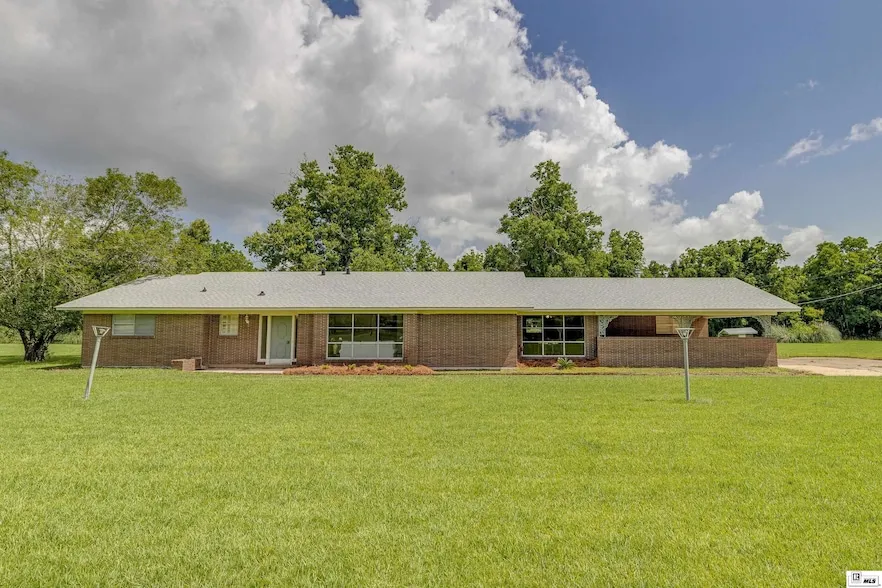 This spacious and light-filled brick home offers peaceful country living with room to grow. Set on 2.25 acres, the property also offers the opportunity to purchase an additional 21 acres separately perfect for those looking for more space or future expansion. Inside, the welcoming foyer leads to a large living room with massive windows that flood the space with natural light. Adjacent is a formal dining area featuring a pocket door for added charm and privacy. A generous den showcases a striking brick accent wall with doors and windows on either side, leading to a covered back patio ideal for entertaining or relaxing. The kitchen boasts ample counter space, upper and lower cabinetry, a breakfast nook with large windows, and a sink overlooking the backyard. Connected to the kitchen is a half bath, a spacious laundry room with built-ins, and a bonus flex space that also offers backyard access. A door off the kitchen leads directly to the attached two-car carport for convenience. On one side of the home, you'll find two comfortable bedrooms with updated flooring and ample closets, a full hall bathroom, and a large primary suite with a walk-in closet, generous natural light, and a private en suite bath. Fresh paint throughout enhances the home's clean, move-in-ready appeal. Outside, enjoy a small storage shed and serene surroundings. Upcoming exterior updates include tree removal in the front yard and general yard cleanup. Don't miss this rare opportunity to own a beautifully maintained home with acreage and potential to expand!