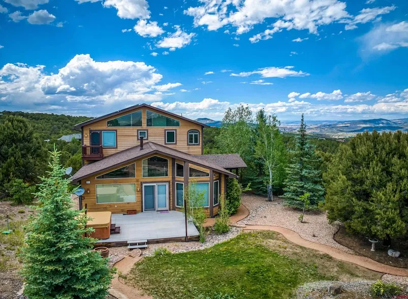 Looking for those big Colorado mountain views? Look no further. This lovely, custom-built home in Loghill Village, just a 20-minute drive from Ridgway, presents some of the best, most expansive views in Ouray County, including the Cimarron and Mt. Sneffels mountain ranges and the Ridgway valley and reservoir below. The 2.3-acre escarpment lot is nicely landscaped with walking paths and sitting areas, including a large Trek deck, from which you can soak in the beauty. The split level home, set above the garage, boasts an impressive, open great room with hardwood-looking ceramic tiled floors, picture windows, gas log fireplace, upgraded kitchen with beautiful granite countertop and breakfast bar, 2 bedrooms, 1 of which has a built in desk for use as an office, bathroom, pantry, and laundry room, and door to garage on the main level. The entire upstairs consists of the primary bedroom suite complete with double vanity, jetted tub and separate walk-in shower with heated seat, walk-in closet, balcony, and great views of the mountains from every window. A spacious 2-car garage with attic space and garden shed provide ample storage for vehicles, equipment, sporting goods, and other toys. Brand new roof will last you for years to come. Enjoy watching the stars at night from the hot tub on the back deck, and the savings in the cost of electricity from the solar panels. This special property offers the perfect blend of privacy, tranquility, and beauty, conveniently located within less than an hour s drive to world-class skiing and the renowned annual festivals in Telluride, and 30 minutes from the quaint, historic mining town of Ouray or the commercial hub and airport of Montrose, not to mention the multitude of outdoor activities in the surrounding San Juan Mountains or nearby hiking trails of Loghill Village and the Divide Ranch golf course. Come check it out and make it yours today!