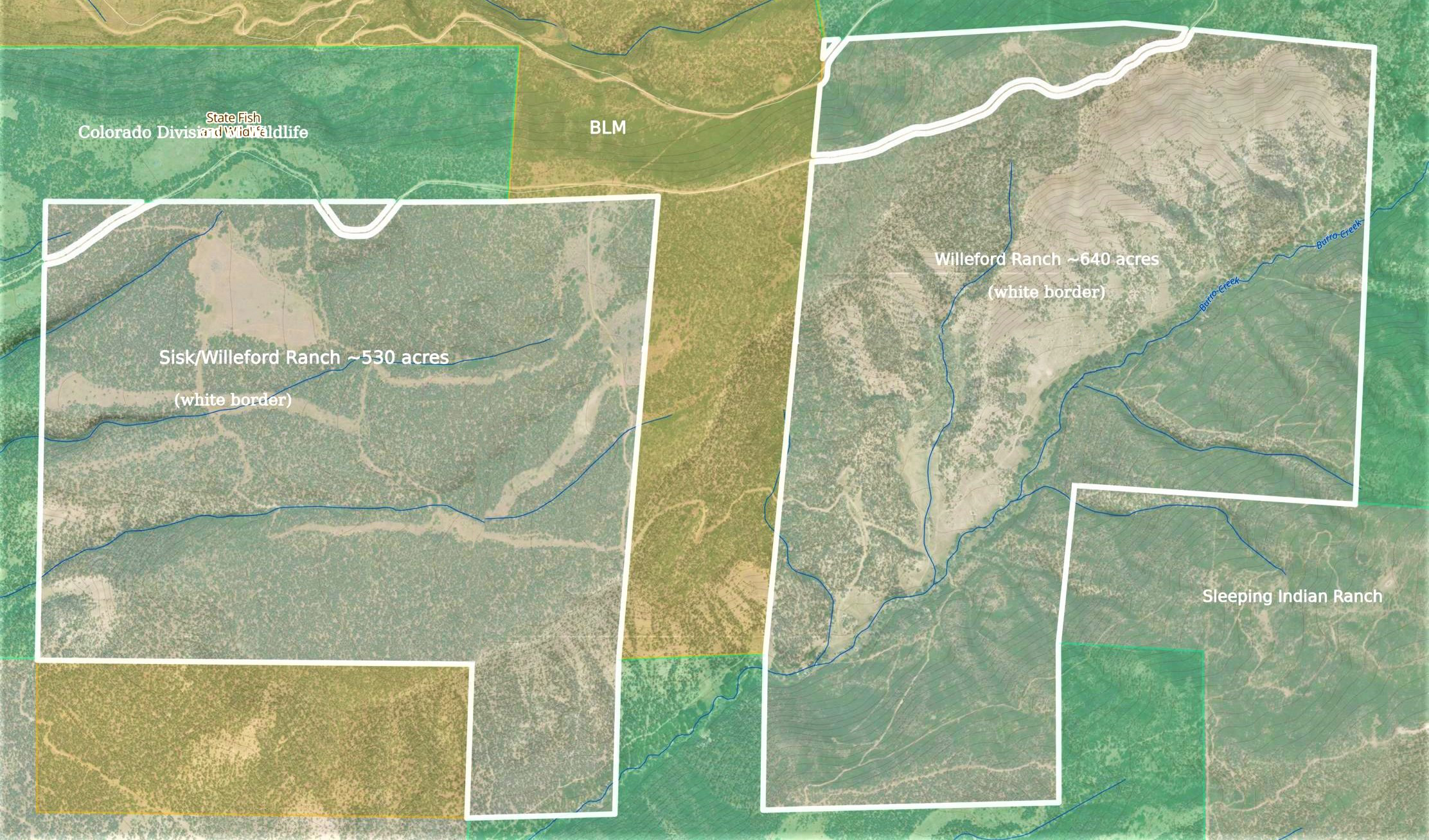The ranch is well protected by large parcels of federal land owned by Bureau of Land Management and state lands (Billy Creek Wildlife Preserve) that are managed to preserve and encourage significant wildlife habitat, primarily for mule deer & elk. The only other direct neighbor to Willeford is the magnificent Sleeping Indian Ranch (an Auberge Resorts property).