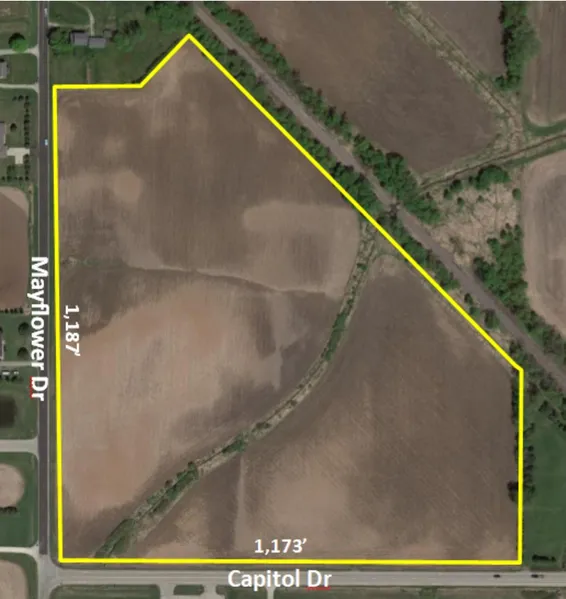 These 27 acres are located just minutes from the City of Appleton. Currently being farmed, this property has excellent residential development potential as well as possible commercial development use. This 27 acre parcel is priced at $18,750/acre. An additional 38 acres directly to the north of this parcel is also available at $17,500/ acre. Both parcels of 65 acres total are available at $16,900/acre. This parcel has 1187/ft frontage on Mayflower Dr and 1,173/ft of frontage on Capitol Dr. The both parcels combined have about 2,031ft of frontage on Mayflower Dr. and 1,173ft of frontage on Capitol Dr. This is a rapidly growing area in the Fox Cities, with both commercial and residential development in the immediate vicinity. This property has easy access to Hwy 41 which is a major interstate highway. The regional Fox River Mall and a very established retail shopping area are in the neighborhood.