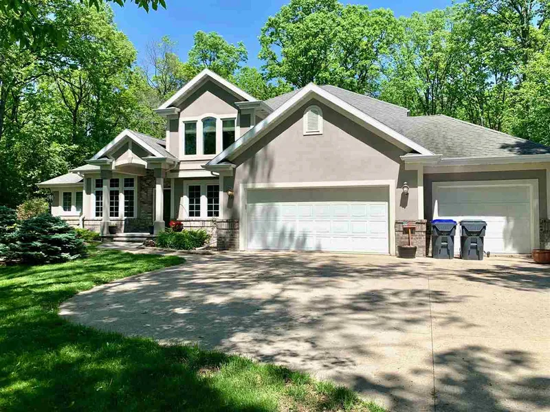 Gorgeous Home Located on 1.12 Wooded Acres! Enjoy first floor master suite with tile shower, soaking tub, private toilet area & double sinks. Two office spaces; hard to find sunroom with stamped concrete patio out back. The kitchen features a center island, Quartz counters, tile flooring, updated backsplash & spacious pantry. First floor laundry. Newer carpet (2017) in all carpeted areas; updated luxury vinyl in sunroom, dining & office. The lower level is partially finished with family room, gas fireplace, theater or rec area & separate exercise room plus a full bath. Central vac too!