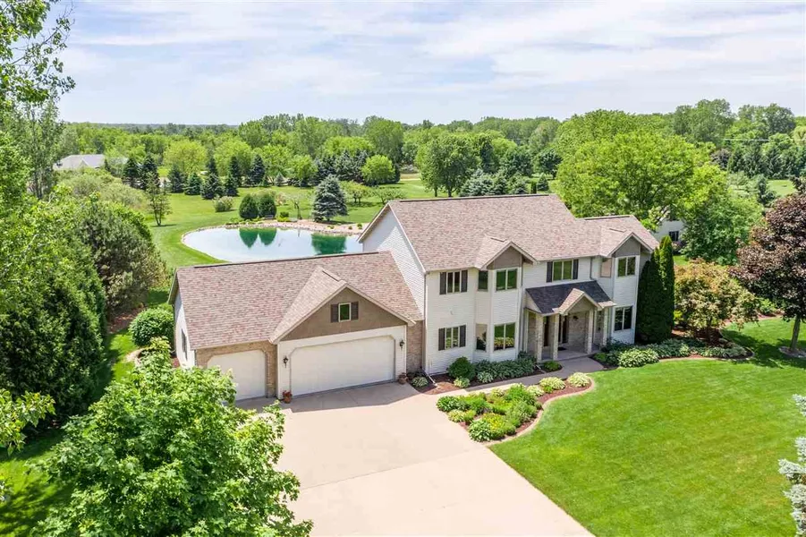 Single owner, beautifully maintained, custom built home situated on 3.5 acres in a quiet subdivision. Step inside to be greeted with an open foyer and hardwood floors leading you into dining area and kitchen. Living room is flanked with brick WB fireplace. Tucked behind find the 4 seasons room overlooking the yard. Kitchen features LG island, quartz and Jenn Air appliances. Formal dining room, full bath, laundry, and office complete the main. Head upstairs to find 3 BRs. Master bath w/ full tile and jetted tub. LL features family room, full BA and gas FP. Gorgeous pond with waterfall surrounded by impeccable landscaping. Attached 3.5 car garage and detached 24x30 building.
