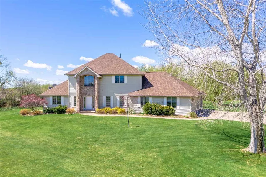Custom built home on spacious lot minutes from Appleton. Step inside to be greeted with a large foyer and stunning floor to ceiling windows overlooking the almost 2.5 acre lot. Main floor master with two WICs. Living room with FP and built-ins. Kitchen with island and dining area. Formal dining/office, half BA, large mudroom and laundry complete the main. Upstairs welcomes three bedrooms and full bath. Beautiful cat walk overlooking the living room and backyard. LL provides even more space! Family room with daylight windows, full bath and flex space perfect for entertaining. 3.5 att. garage.