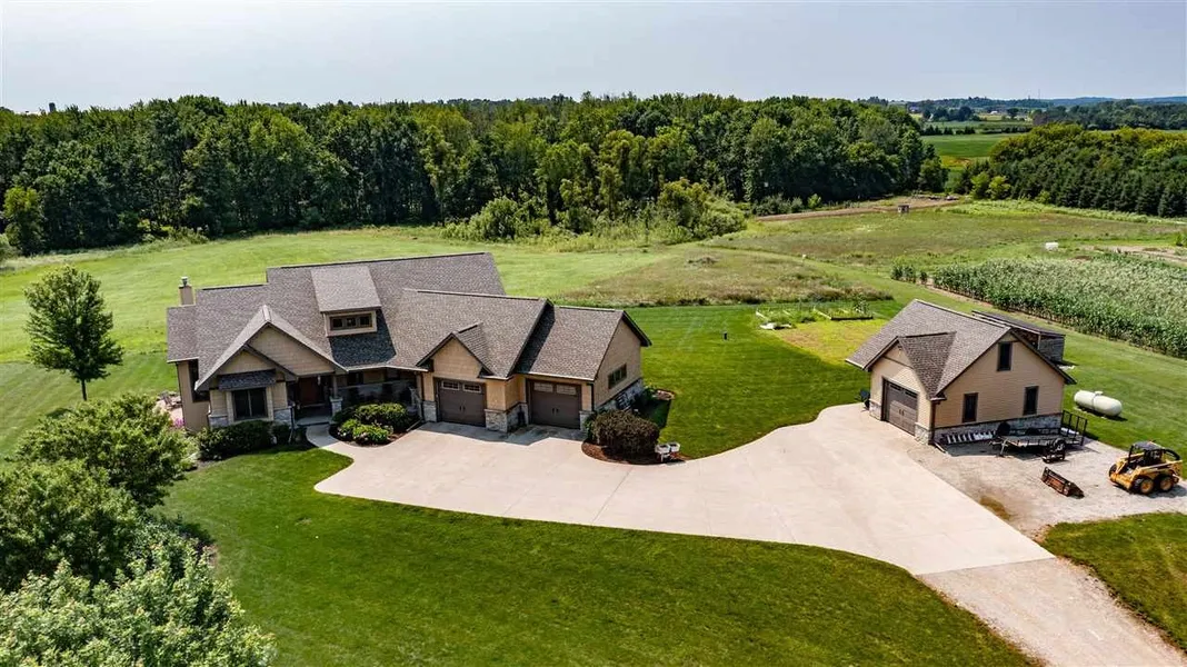 Beautiful Craftsman style home sits upon 10+ Acres, just 15 minutes from the intersection of Hwy 41 & 47. Relax on your deck, in the Hot Tub, or around a crackling Fire pit, as you watch Deer and Turkeys chasing in the fields. Numerous fruit trees and garden space for those who like to grow their own. The spacious family room with doors to the patio, will be a gathering place for years to come. The theatre room is sure to be another favorite.