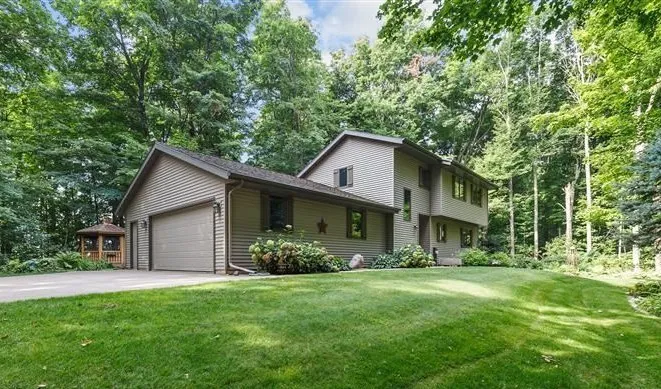 MUST SEE TO APPRECIATE! This 3 BR, 2 BA, 1.5 story home nestled on a wooded cul-de-sac 1.42 acre lot. This home is approx. 15 minutes from Appleton. Features a Great Room with vaulted ceiling, and wood burning fireplace. Enjoy all the seasons with gorgeous views of the wooded backyard. The spacious outdoor area with stamped concrete patio and firepit is a peaceful spot to unwind. 1st floor laundry, central air, finished room in the lower level, gazebo! Come see for yourself! Call today for your private showing.