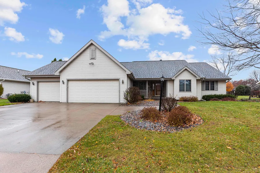 Located in a quiet neighborhood, this ranch home has all the features you have been looking for! Spacious kitchen w/walk-in pantry, planning area, snack bar & convenient dining area w/built-in hutch. Living room w/vaulted ceiling & wood-burning FP. Two large guest bedrooms; one with a walk-in closet. Comfortable master suite featuring a roomy walk-in closet, bath w/dbl-sink vanity, jacuzzi tub and separate shower. Huge 3.5 car attached insulated & drywalled garage. Clean & dry lower level just waiting for your finishing touches. Two large brick patios & a private yard complete the package!