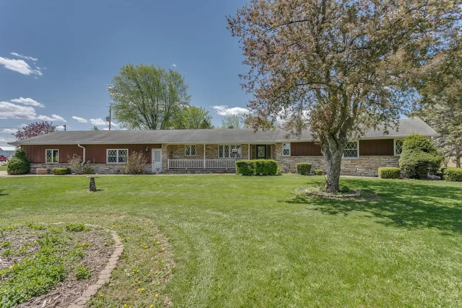 Great location for your new home just minutes out of town with easy access to the highway and town amenities. Sprawling 4 bedroom 3 1/2 bath ranch has enough space for all. Great room with wood burning fireplace. Wonderful eat-in kitchen with center island, cozy coffee niche & 1st FL office! Lower level is mostly finished and awaits flooring in the family room with 2nd fireplace. Tandem 2 car garage, 3 seasons porch & gazebo to watch beautiful sunsets overlooking the pond. Approx. 4 acres included sale. Seller will have survey complete prior to closing. Property tax id # is for entire 30 acre parcel - proration of property taxes will be based on the home and 4 acres of land.