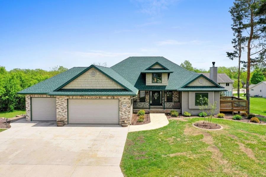 This welcoming walkout ranch packs a load of livability into its design. Inside, the foyer opens to the great room defined by a cathedral ceiling and attractive fireplace. Cooks will appreciate the custom maple cabinetry, snack counter, and built-in appliances. The dining area accesses the 34x13 composite deck. Positioned for privacy, the primary suite features a jetted tub, dual sink vanity, and separate deck. The heated garage filters traffic through the laundry workspace hidden from view of the living areas. Perfect for year-round gatherings, the walkout family room features a wood-burning fireplace and wet bar area. Versatility abounds with the lower-level office, bonus room, and workshop. Note the substantial hardscape landscaping, new roof and water heater. Home warranty included!