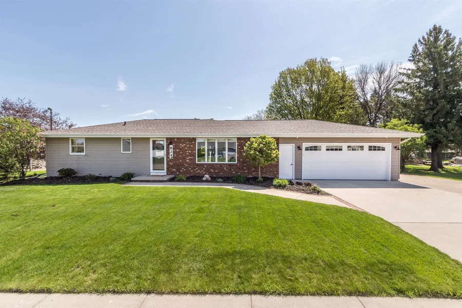 Happiness is what you will feel when you walk in to this updated & loved home on a manicured yard w/mature trees! Large light bright living room with a wall of window, open dining room w/ patio doors to the great backyard, kitchen w/ lots of cabinets, great counter space & snack bar. All 3 bedrooms have updated flooring, primary bedroom offers access to the large full bathroom with granite countertops. Finished lower level adds great space to this home with the family room & bar area. Check out the updated bathroom with large jetted tub and shower! Laundry room with great storage space, additional work out room. Extra clean 2 stall attached garage with epoxy floors, and access to the large private backyard with an additional garage that has electricity. There is extra parking slab.