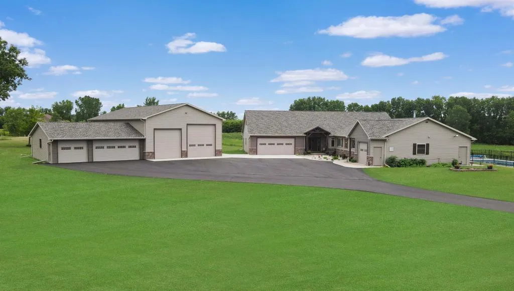 Exceptional luxury home with its stunning design and innovative living spaces allows plenty of room to roam inside and out! Boasting nearly 5500 +/- sqft including a 1300 sqft +/- adjoining suite that could be home office or entertainment space. Amenities include: nestled on 2.7+/- aces, walk-out ranch, heated in-ground 20x40 pool, 36x64insulated drywalled & heated shop w/ 1/2 basketball court.30x36 shop that could be made into an enclosed hobby farm for animals. Main house features nearly 4,200 sqft +/- w/ upgraded materials, HUGE kitchen w/professional appliances, primary bdrm w/ steam shower, finished LL w/ theater room, & entertainment space. Adjoining suite living quarters & attached garage. Close to HWY access, Appleton North HS & FVL. Could be 6 bdrms w/mound extension.