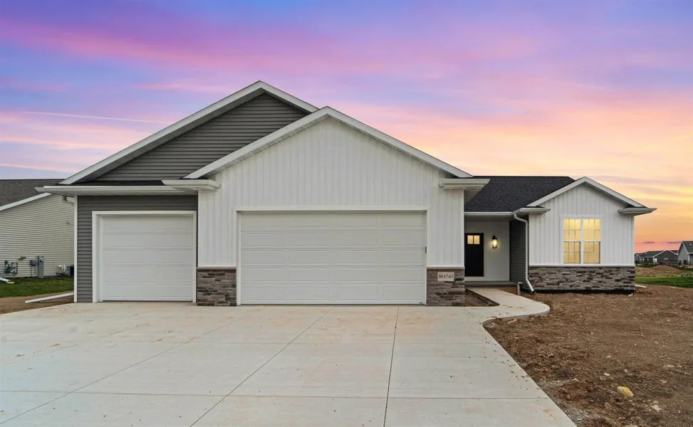 Welcome to this inviting open concept ranch by Midwest Design Homes that is Focus on Energy built! Enjoy an inviting foyer with views to the Living Room with stone-faced gas fireplace and wall of windows capturing the Southern sun. Kitchen features a huge pantry to house all your large appliances and has a drop center, large island, hard surface counter tops, appliances included, & dining area with patio door to backyard. Split bedroom design with large primary bedroom with attached bath featuring a tile shower, walk-in closet, & dual sink vanity. Main level includes 2 additional bedrooms, second full bath, large laundry room with folding center, and massive closet at the garage entrance! Full concrete driveway already installed & egress window for future expansion possibilities!