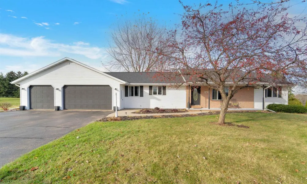 Perfectly nestled on large lot just minutes outside of Appleton is this charming ranch home that gives you room to roam! Step inside an find an open concept with large living spaces and tons of room for entertaining! A split bedroom allows for a private primary suite with attached bath and two additional bedrooms and second full bath on the other side of the home! Tons of updates with new plank flooring, lighting, doors, roof, furnace, and a/c (per seller)! The lower level features extra living space with a rec room, game area, and office (ceiling is not finished), and has stairs to the OVERSIZED deep garage that measures 30x32! Enjoy beautiful sunsets from your back patio overlooking the tree-lined backyard that brings both beauty and privacy to this Mother Natures paradise!
