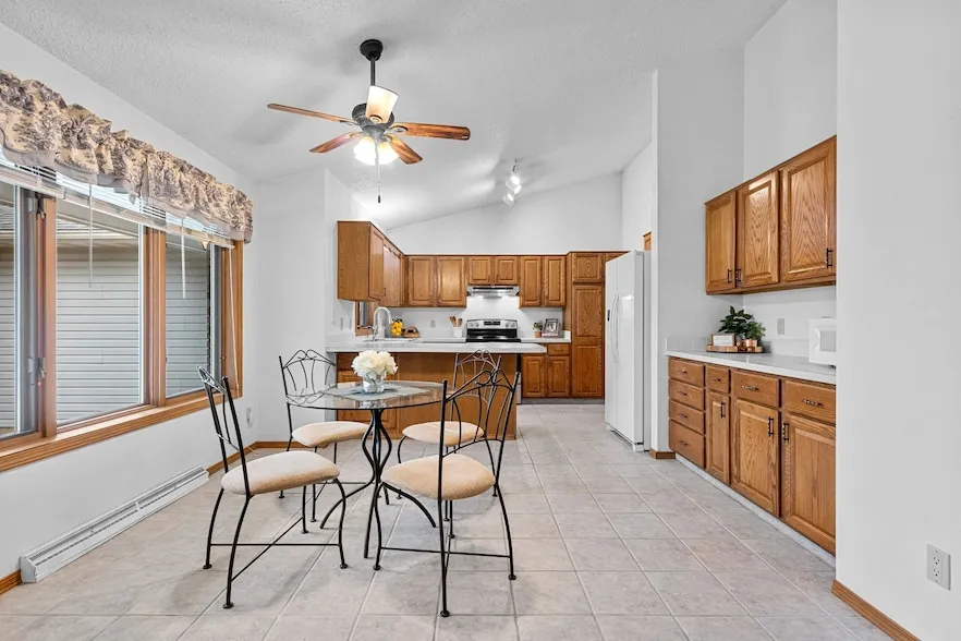 Set on a generous 2.72-acre wooded lot, this split-bedroom ranch offers plenty of space inside and out. The bright kitchen features ample storage, a breakfast bar, and an attached dining area. Walk through to the cozy family room, complete with a gas fireplace and doors leading out to a deck that overlooks the private backyard. This home also boasts vaulted ceilings, first-floor laundry, and a basement ready for future expansion.