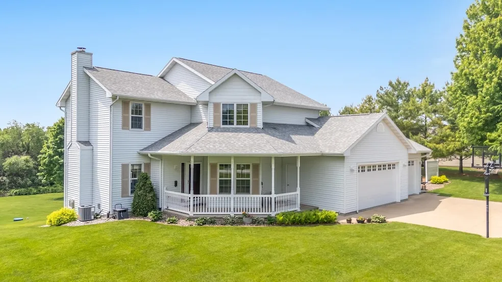 Welcome to this well-cared-for 2-story home on a beautiful 1.05-acre lot! Enjoy a spacious 3-car heated garage, main floor laundry, and a cozy 4-seasons room. The main level features a warm wood-burning fireplace, while the finished lower level offers a gas fireplace in LL rec room and generous storage. Outdoors, relax by the fire pit or tend to your hobbies in the convenient garden shed. This home combines comfort, charm, and functionality inside and out! Please submit offers by 2p, Monday 6.9.25. Reviewing offers Monday night 6.9.