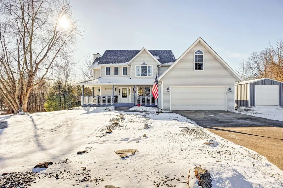Welcome to your dream home nestled on a 1.24-acre lot in close proximity to town. This spacious residence boasts 3/4 bedrooms and bonus room above the garage, providing versatility for your lifestyle needs. The two-car attached garage ensures convenience, offering ample space for your vehicles and storage. A highlight of this property is the meticulously finished detached pole barn, adding a touch of character and versatility to the space. This additional structure serves as a perfect workshop, storage area, or even a recreational space tailored to your desires. The interior of the home is designed for comfort with 2.5 baths, ensuring convenience for guests. Immerse yourself in the elegance of the kitchen, adorned with quartz countertops that not only elevate the aesthetic but also provide a durable and timeless surface for your culinary adventures. Updates include hardwood floors, new carpet in the living room, new roof in 2023, water heater, water softener and appliances within the last 5 years. HVAC was replaced 7 years ago. The expansive yard provides a canvas for outdoor activities and gatherings, creating a tranquil retreat while maintaining easy access to town amenities.