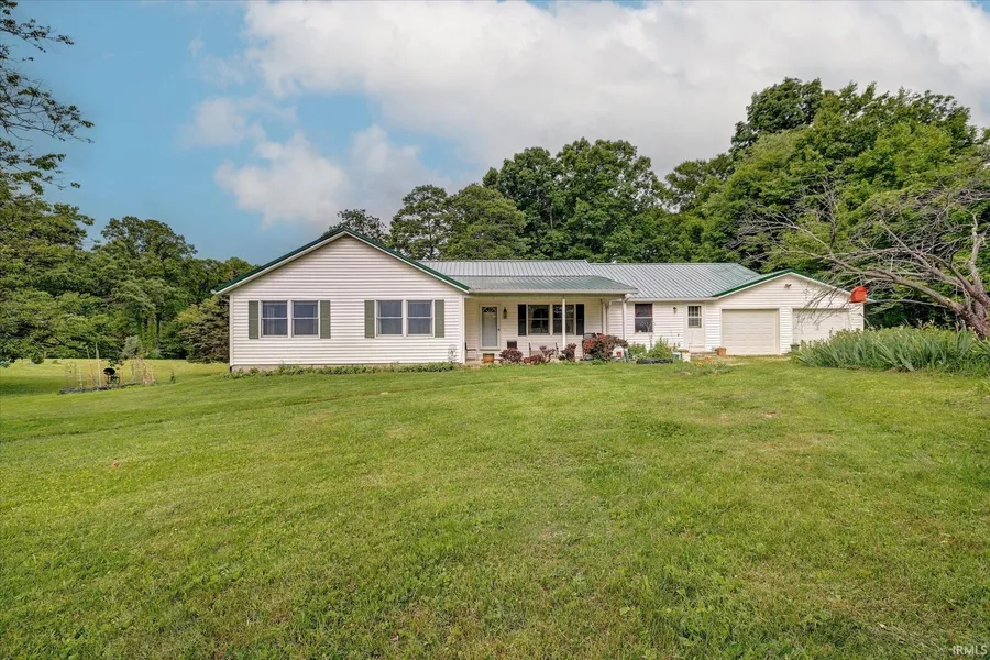 Nestled in Northern Owen County, just minutes from Cloverdale, Spencer, and I-70, this beautiful 10-acre property offers the perfect balance of wooded privacy and open space. The land features two stocked fishing ponds and plenty of room for gardening, recreation, or enjoying the outdoors. Built in 1999, the ranch-style modular home includes 3 bedrooms and 2.5 baths, along with a spacious 16'x27' bonus room??ideal for a home office, gym, or potential 4th bedroom??conveniently connected to a two-car garage. Step inside from the inviting front porch into a cozy living room that flows seamlessly into the kitchen, complete with a large center island. The open-concept layout continues into the designated dining area, which opens through sliding glass doors to a generous two-tiered deck??perfect for entertaining or relaxing while enjoying the scenic views. A dedicated owner's suite, ample living space, and abundant outdoor possibilities make this a rare opportunity for country living with all the comfort of home. Sellers have replaced the HVAC system and added a metal roof within the last two years. Rest assured you will always have power with the 23kW Generac backup generator. Whether you're a gardener, outdoors enthusiast, or avid hunter, this property has something for everyone.