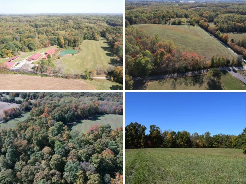 Tract 1: consists of 80 +/- acres commonly known as 3676 Steubenville Road in Freedom, IN. This parcel is improved with a 936 sf, 2 bedroom, 1 bath wood-sided home with a full, unfinished basement. In need of some repair and updating, the home has a metal roof, enclosed back porch, wood-burning stove for heat, window air conditioning, a well for water and a septic system, where the line from the house to the tank has been repaired. Once used for farming and a horse and mule operation, this parcel has numerous other improvements including:
